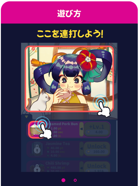 ひたすらご飯を食べさせる新感覚のクリッカーゲームです。